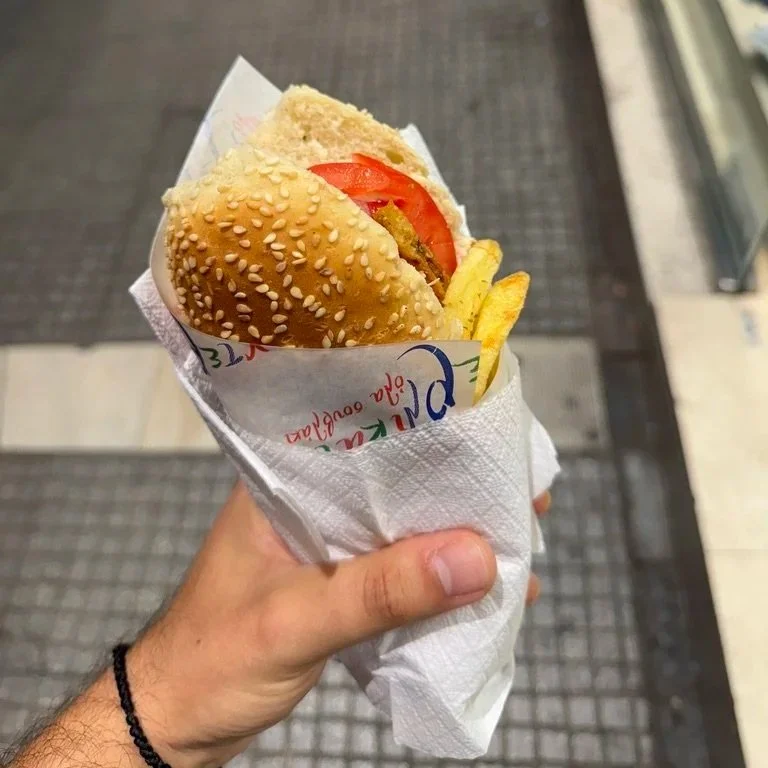 Near the church of Saint Gregory, just south of Tsimiski, is a grill packed with skewers in one of Thessaloniki’s best-rated souvlatzidika. Derlicatessen specialises in souvlakia, as its name (“Derlicatessen all souvlakia”) suggests, but the memorable trademark here is the souvlouri: souvlaki served in the seeded bun koulouri.