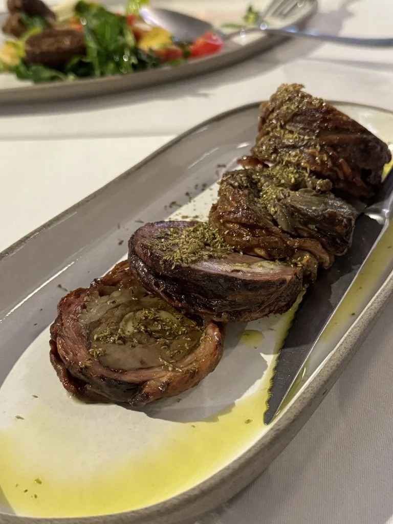 The product is a symphony of a menu that harmonises flavours from Crete, Tinos, Kefalonia, and also London. 3 dishes from the original menu – which generations of Thessalonians grew up on and would queue for – live on in its reincarnation: patates ‘komplé’, stuffed bifteki and filet mignon. You should otherwise expect a fresh and thoughtful portrayal of Greek cuisine that spans from village bourekia of Chania and wild artichokes from Tinos, to Cretan gamopilafo and souvles of the day, viz. kokoretsi and kontosouvli.